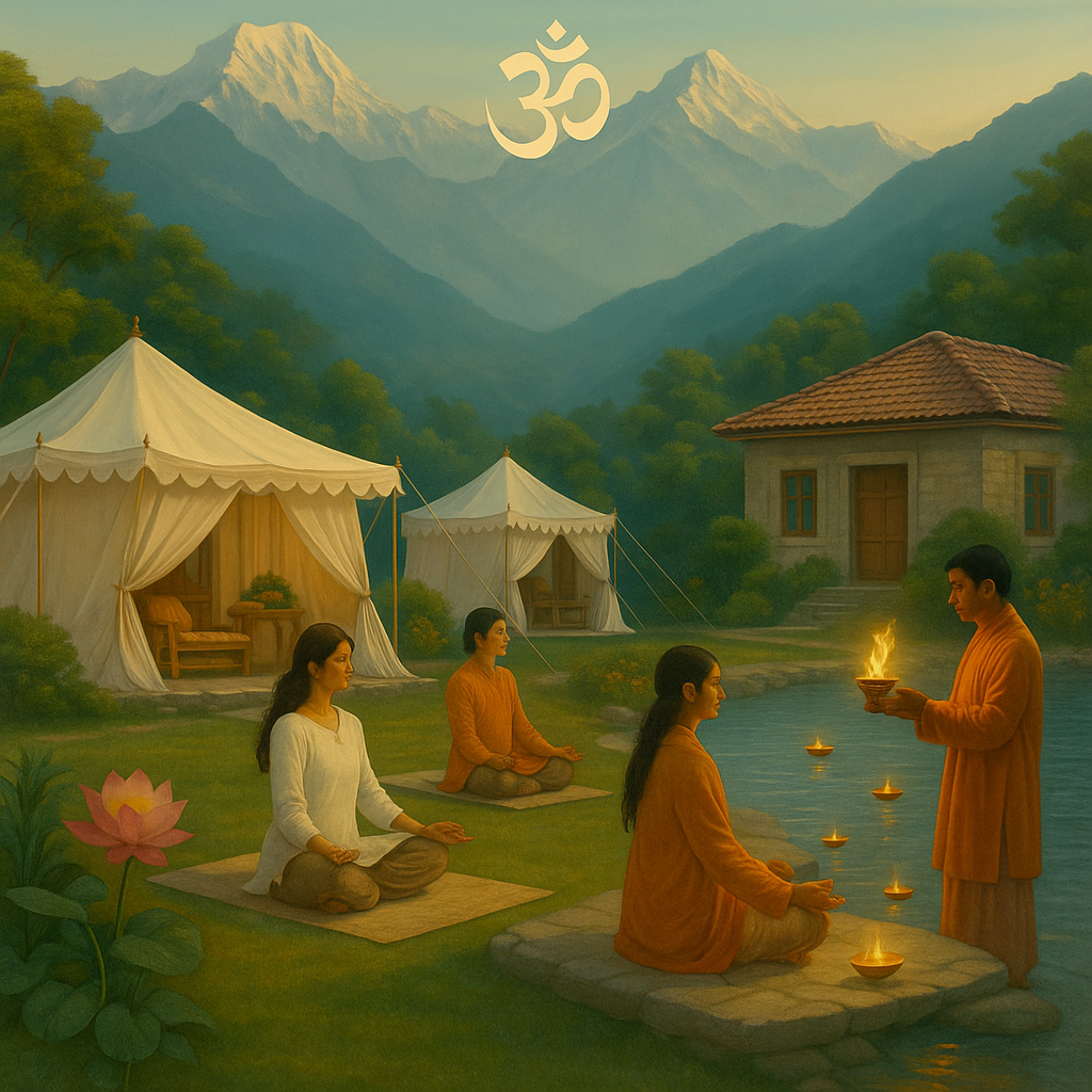 Handcrafted retreats with luxury tents and eco cottages in spiritually charged locations.